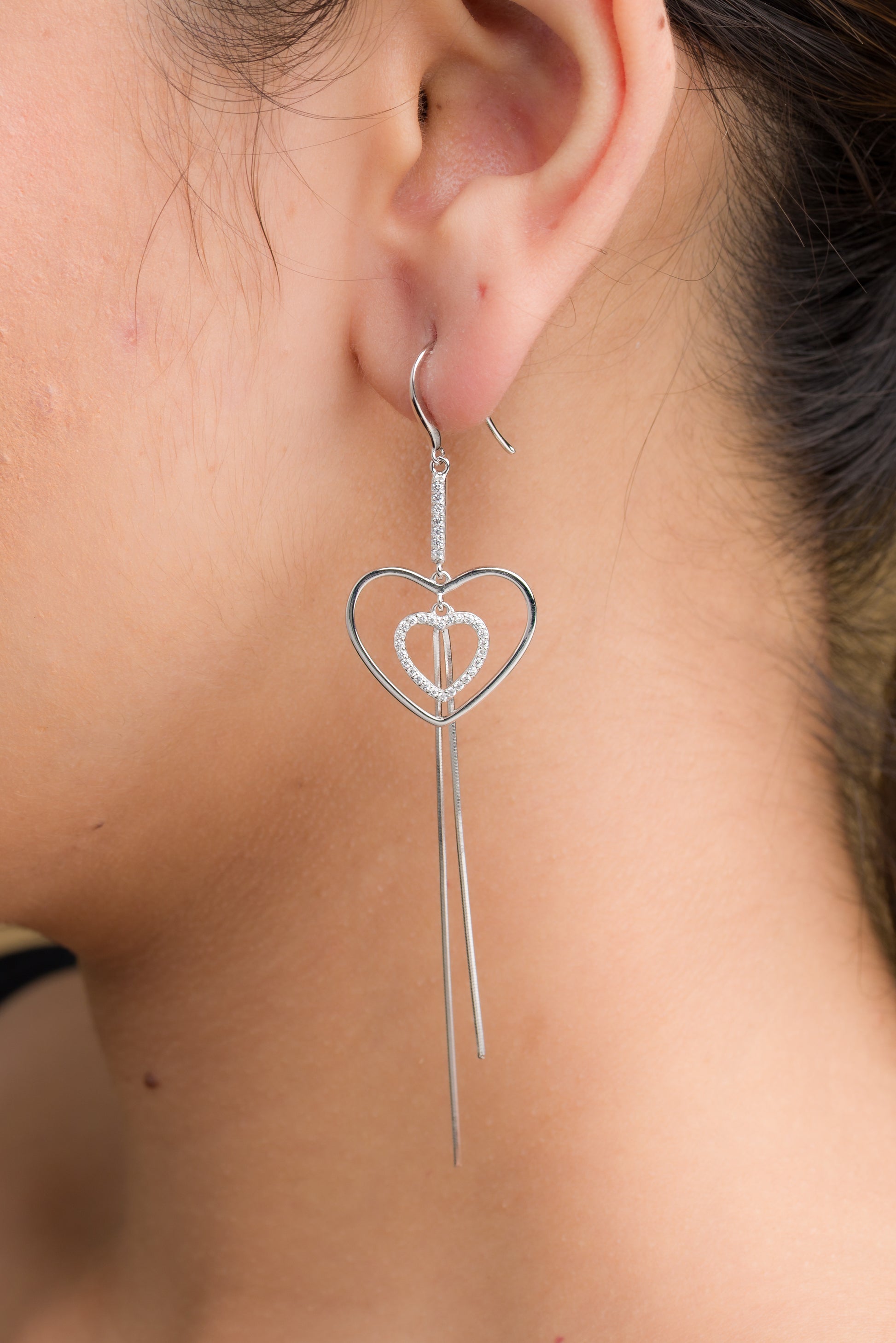Expertly crafted Hearts Dangle Earrings in genuine 925 silver combine minimalist elegance with versatile appeal. Their sophisticated design transitions seamlessly from office to evening events, offering a touch of luxury without overwhelming your look. The durable silver construction ensures these timeless accessories maintain their beauty through daily wear.