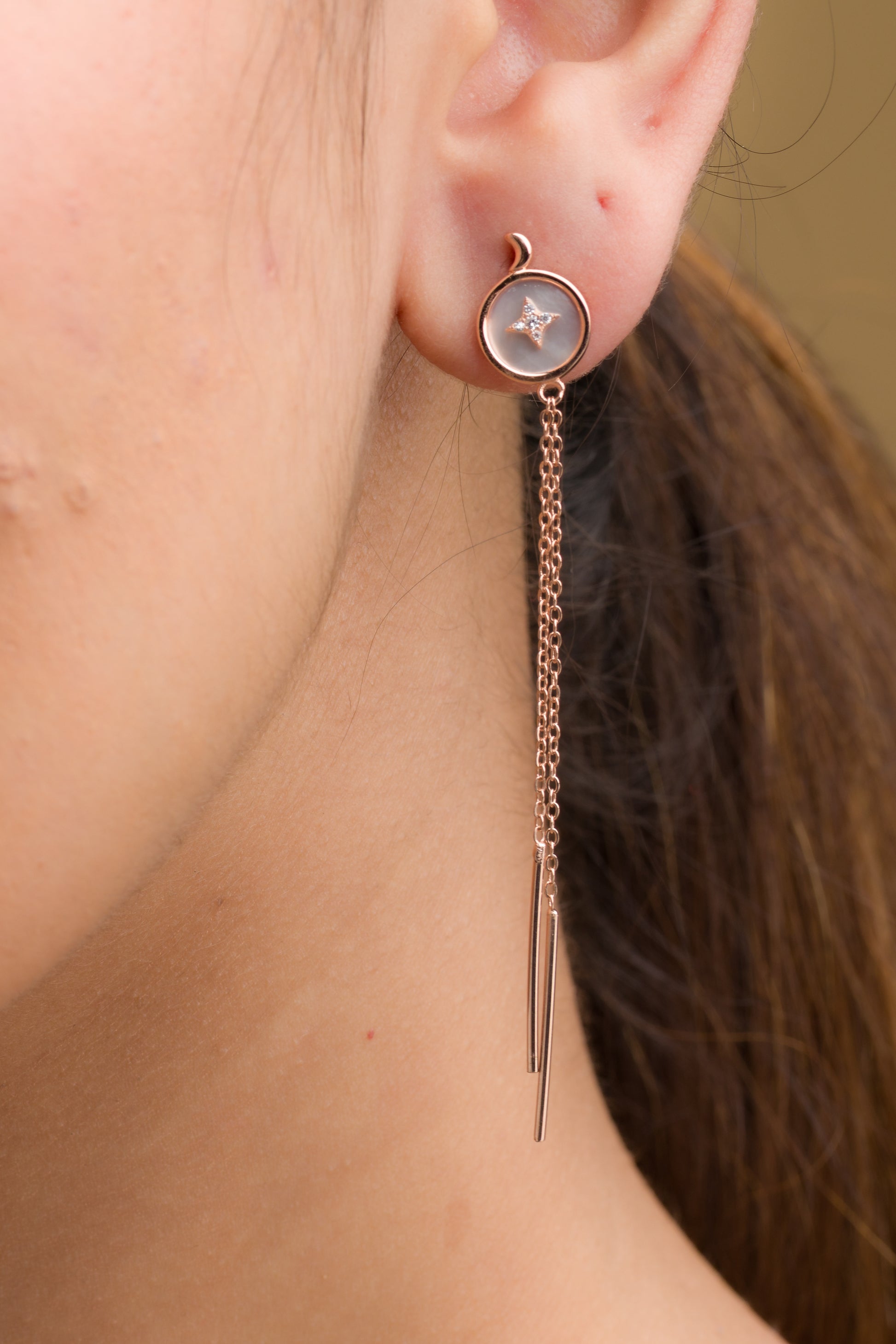 These Mother Of Pearl Sui Dhaaga Earrings are the perfect addition to any jewelry collection. Made of 925 silver, they are not only durable, but also elegant and classy. With their minimalistic design, they can easily transition from office wear to party wear, making them a versatile choice for everyday wear. Elevate your style with these beautiful and sophisticated earrings.